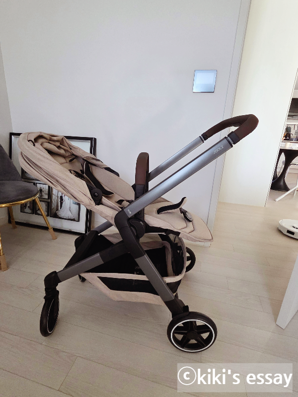 폴딩 방법도 편리했고, 적당히 가벼워서 내가 혼자 유모차를 접고 들 수도 있을 것 같았다. 절충형이기 때문에 아기가 시트 위에 누울 수 있도록 180도 가까이 젖혀지는 것도 좋았다.